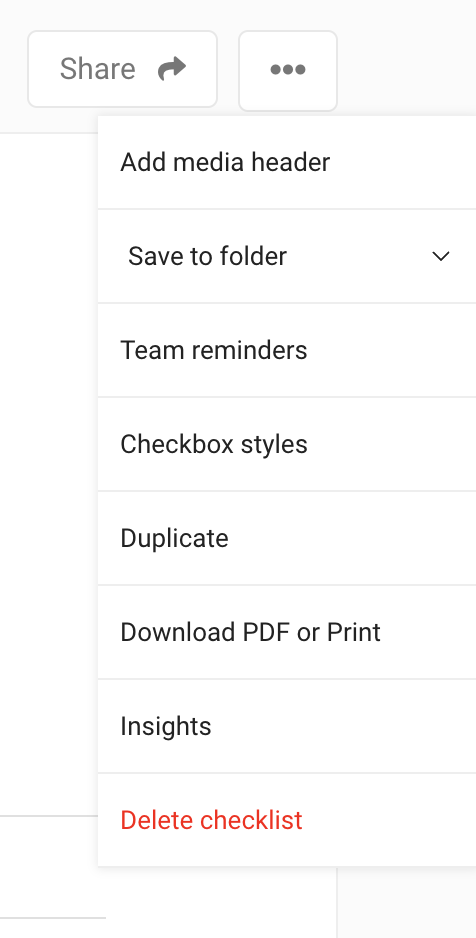 Click on the three dots at the top right of the checklist. Scroll down and click on Download PDF or Print.