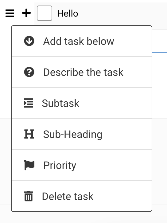 To the right of every task is a + sign that appears when you hover over the task. Click on the + sign, and a menu will appear with "Describe the task." You can use this as notes and add images, videos, or links to help you further describe your tasks.